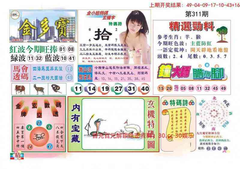 | 312期:金多宝 解:更新中 综合:更新中 主特:更新中 防特:更新中 |